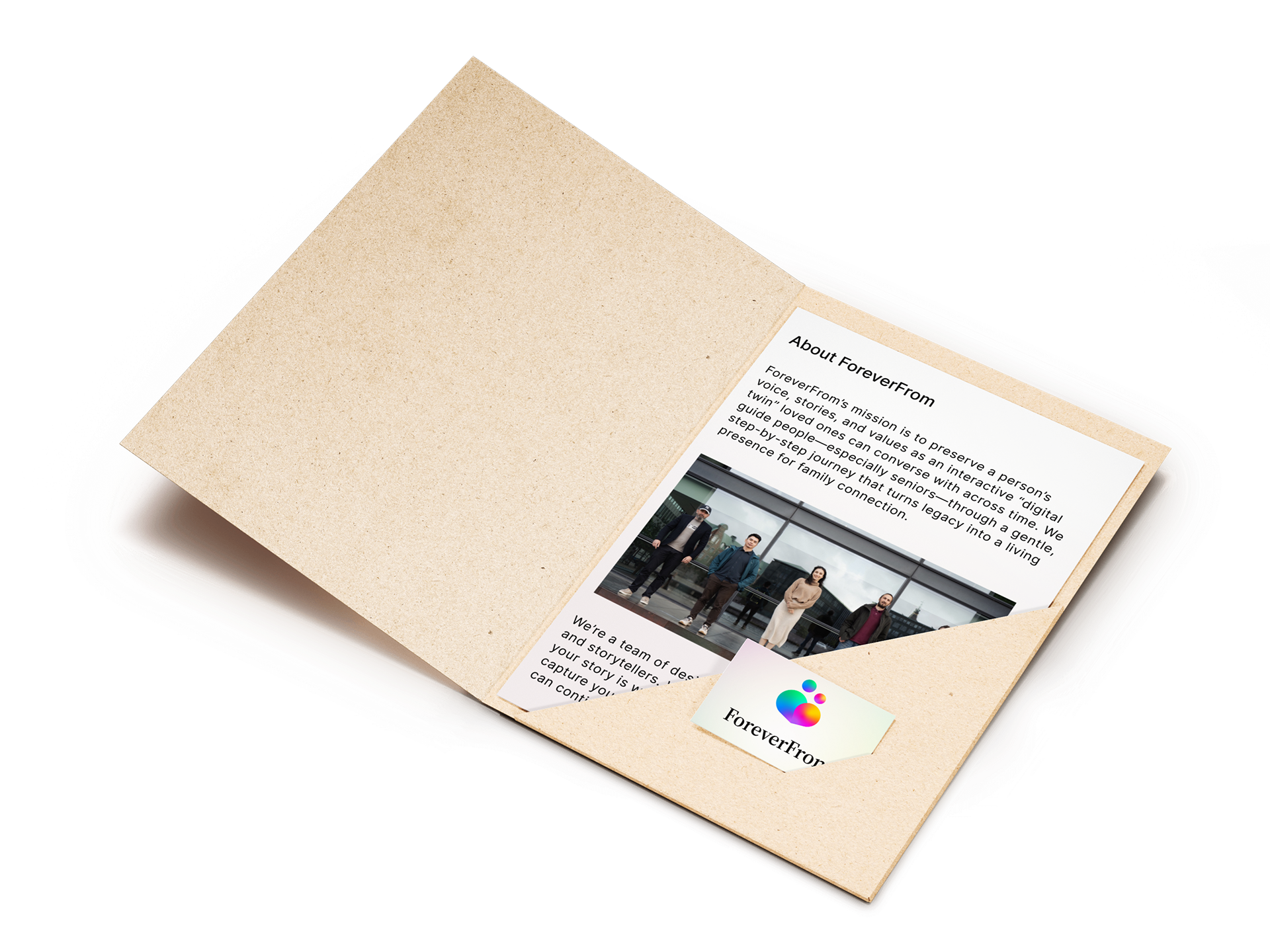 ForeverFrom is creating the world’s first intelligent legacy platform - a way to capture your voice, personality, memories, values, and presence so they can continue to be felt and understood long into the future. This is digital immortality, built with care. Thoughtful. Private. Personal. Human.